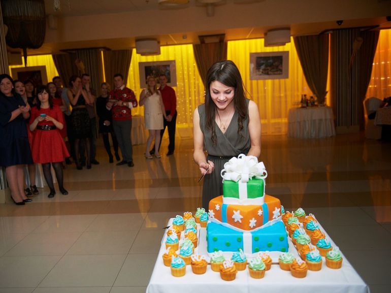 А вот дальше было самое волнительное, оказывается решили устроить целую презентацию торта и я как его исполнитель должна была его еще порезать.