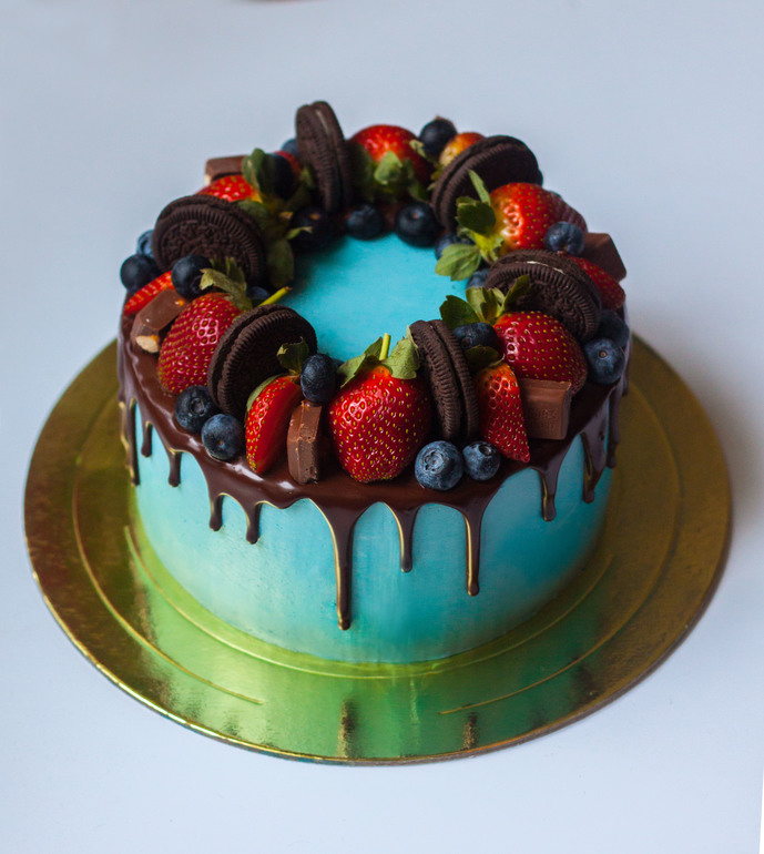 Украшение тортов кремом,шоколадом, фруктамиТочнее для его коллег - повез на работу в честь дня своего рождения)