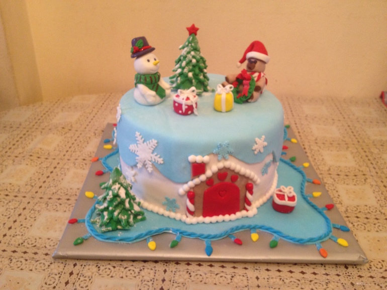 Первый раз делала торт с новогодней тематикой . Вот это у меня получилось .