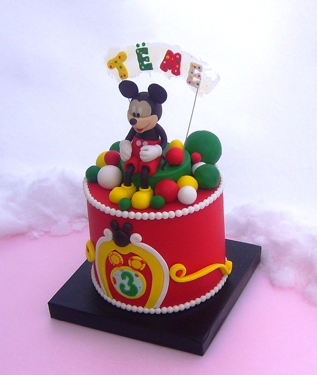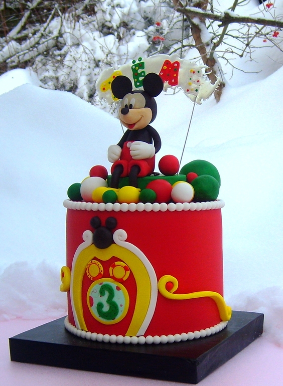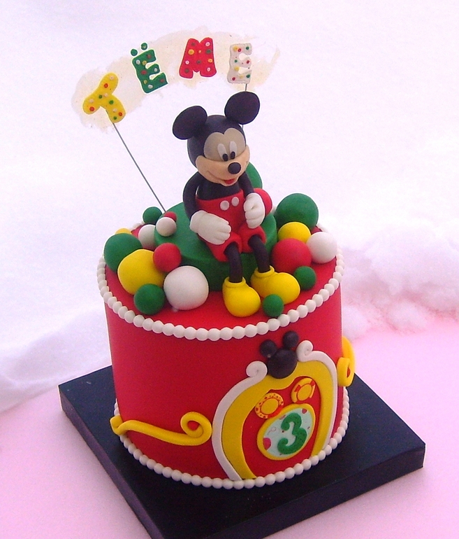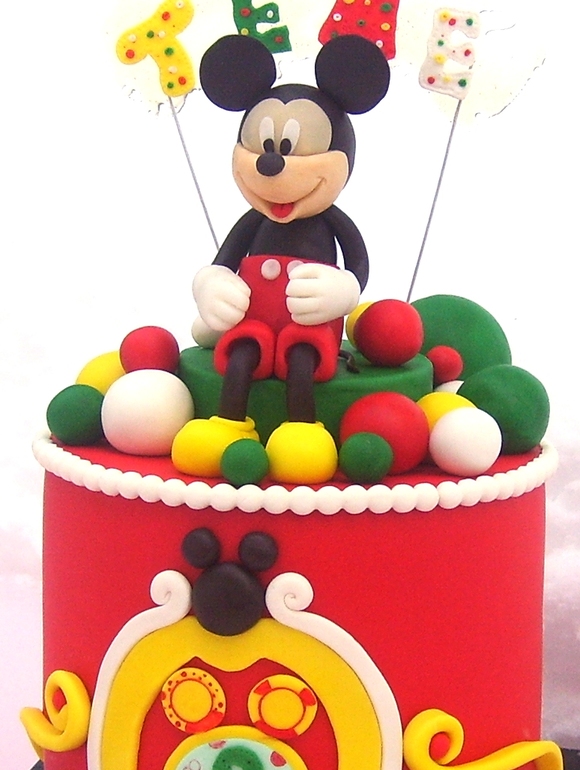 Ребенку нравится этот мультфильм, в частности сам Микки Маус и его подручный (кто не в курсе - вон то, на борте торта) - круглое с ушами на манер логотипа Микки)