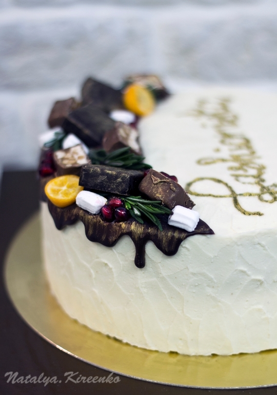 Украшение тортов кремом,шоколадом, фруктамиМорковный с соленой карамелью, сырный крем, украшения - все как обычно, никого не удивить :) Ну, разве что надписью :)))) Сначала написала зубочисткой по крему, потом рисовала краской, это была моя ошибка, конечно. Но сразу краской без наметки побоялась, вот и. В любом случае, как принято говорить, живьём он гораздо симпатичнее и огрехи написания не так видны :)))