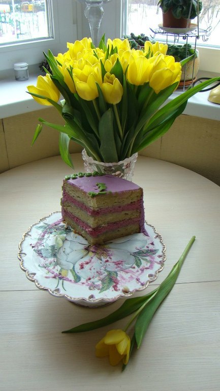 Она давно мои тортики лопает!)))) Та еще сластёна!!! А в этом тортике прослойка-малиновое суфле, мне кажется одна из самых любимых ягодок деток и не только)))