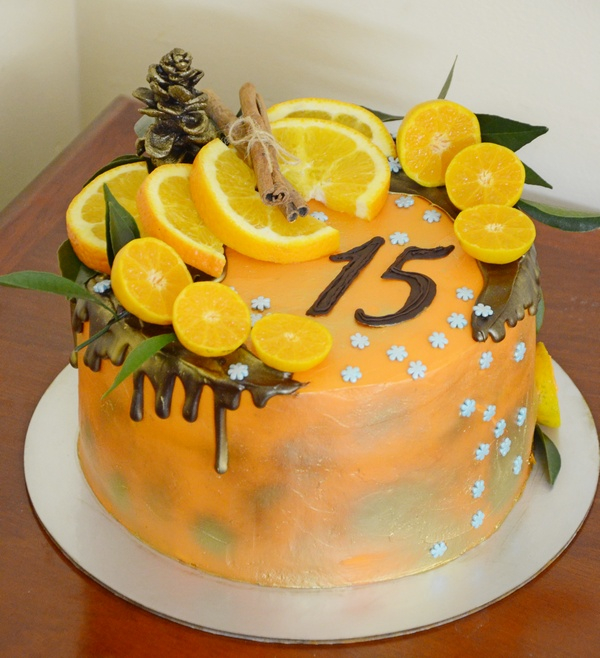 Первый-бисквит шоколадный, крем чиз со свежими апельсинами, слой шоколадного кремчиза. Покрытие-сыр-масло