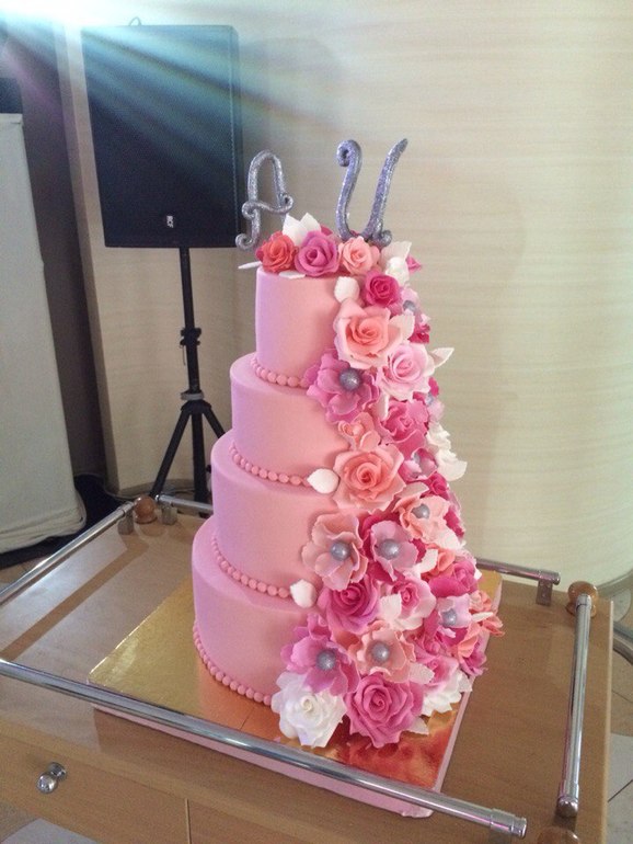 Спасибо большое всем за помощь в подготовке к этому торту, в особенности Ольге Королевой! Вес 15.5кг 4 яруса и 50 цветов.