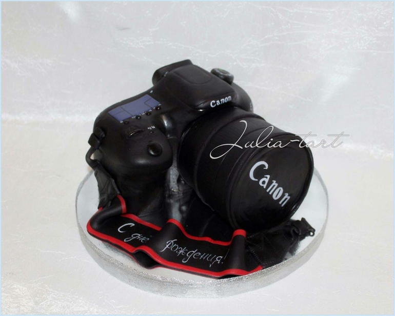 Торты тематическиеВот моя практика пополнилась и тортом-фотиком))) Торт в качестве подарка фотографу. Попытку повторить модель кенон марк 2 для себя считаю успешной, постаралась максимум детально это сделать))
