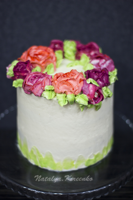 Наташа! Для первого - очень хорошо. Да еще крем филадельфия....Кремовые цветы делаю только из масляного заварного. Молодец.