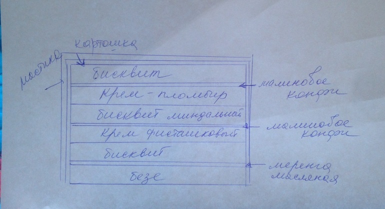 Я делала безе только в середине все хорошо получалось корж не идеально ровный и внизу может осесть под весом тортика-пойдут трещины, по вкусу интересный получается, но может быть ограничится ванильным бисквитом без миндального?