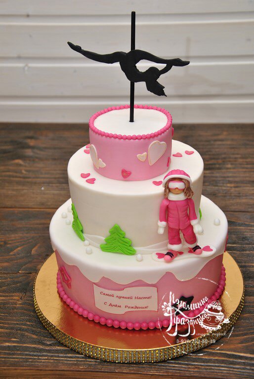 Первый торт сюрприз от близких друзей , для девушки, которая танцует и катается на сноуборде