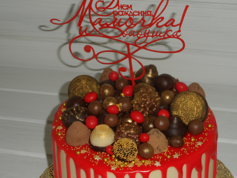 шикарный торт, позвольте поинтересуюсь топер заказной или уже готовый покупали?