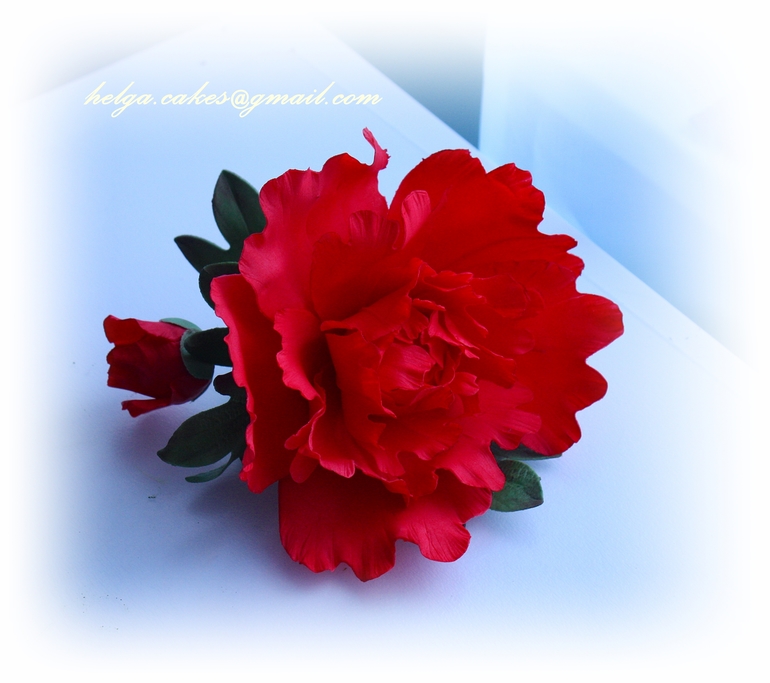 В составе молочная девочка с клубничным желе. Сахарный пиончик отдельно под катом.