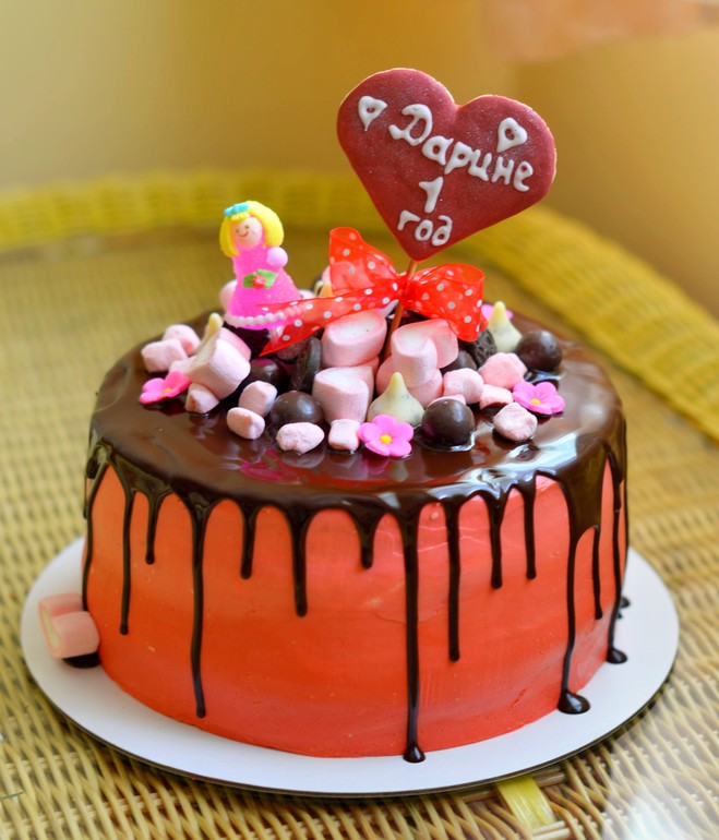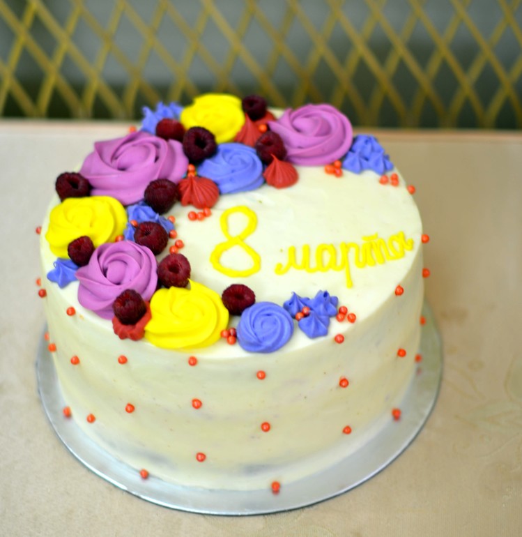 Украшение тортов кремом,шоколадом, фруктами1. Молочная девочка с персиком и малиной, покрыт крем-чизом