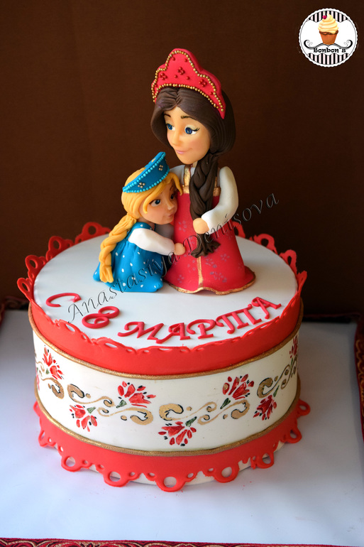Торты для женщинДля мамы,которая, увлекается ведической культурой и русским фольклором) +попытка сделать роспись по тортику)