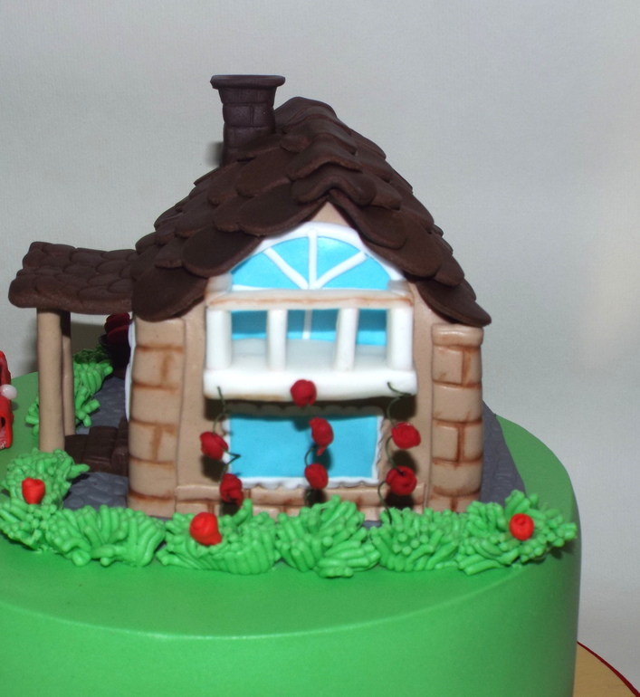 Мариш, какое ребрышко у тортика идеальное)))травушка прямо муравушка... вот бы на красненьком машинке.да в такой домик)))