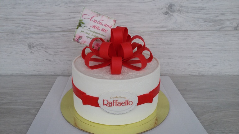 Торты для женщинЭто моя вторая коробочка Раффаэлло. Вес 3,250 Внутри "птичье молоко". Еще просили сделать надпись,типа открыточки. Под катом фото с открыткой.