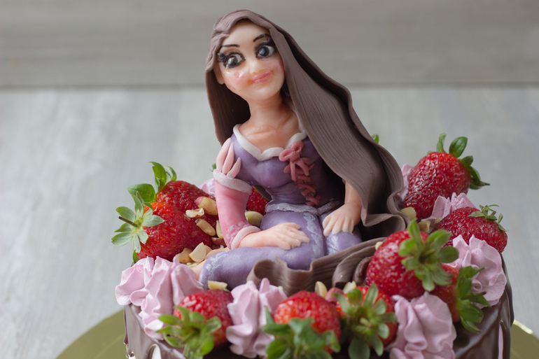 Украшение тортов кремом,шоколадом, фруктамиНа днях делала вот такой тортик. Главная его фишка в том, что он абсолютно постный! А ещё моя Рапунцель - кареглазая шатенка, как и именинница, для которой был заказан этот замечательный сладкий подарок!