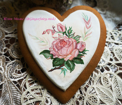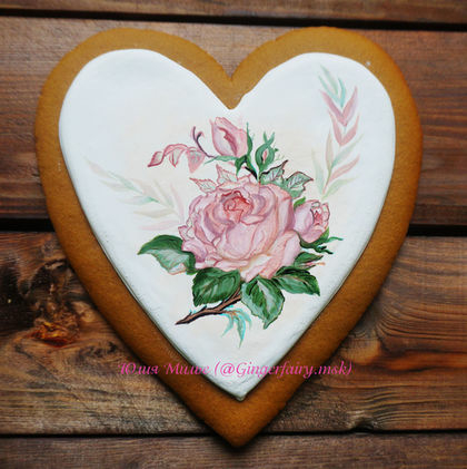 покажу еще одну свою старенькую работу. Это большой для меня пряник 18 см, разумеется полностью ручная роспись. А большие формочки это наболевшая тема)) В свое время, когда еще не было у нас в России гигантских формочек от 10 см)))) а были только маломерки от вилтон, за которыми еще приходилось охотиться и по разным нашим городам, и из Америки заказывать , много таких роз было нарисовано в мини-виде)