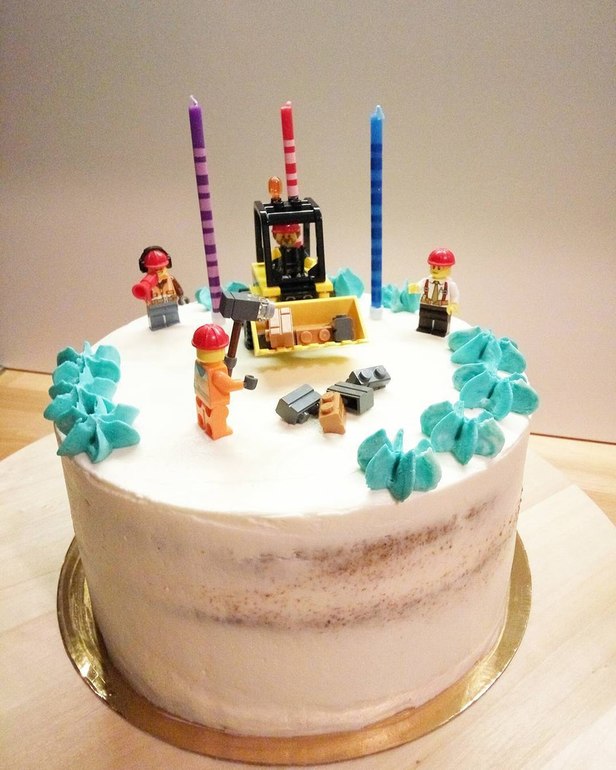 Тот же самый торт, но сняла лего и свечи, выровняла верх и украсила кремом. (Ребенок пока вытаскивал лего повредил верх торта, пришлось реанимировать к прходу гостей)