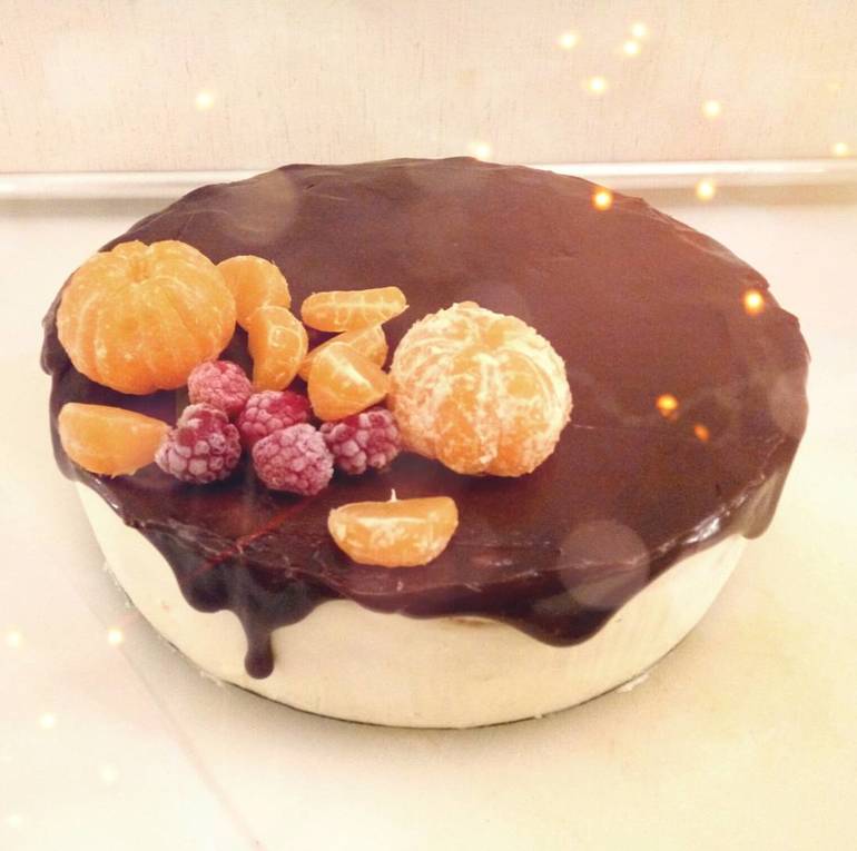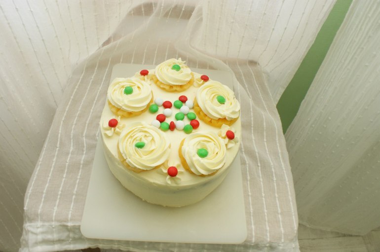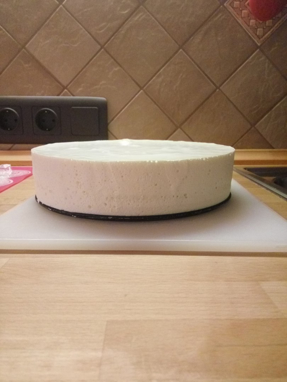 Ванильный бисквит, творожный крем+ананасы, выравнивание крем-чиз.