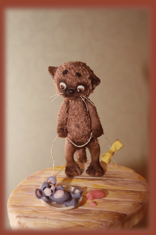 Фигурки и цветы из мастикивидела у кого-то авторскую игрушку котика такого....полепила просто для души сегодня)))было немного времени между курсами))