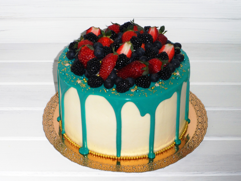 Украшение тортов кремом,шоколадом, фруктамиВанильный шифоновый бисквит, апельсиновый курд, черносмородиновое конфи, сырно-сливочный крем.