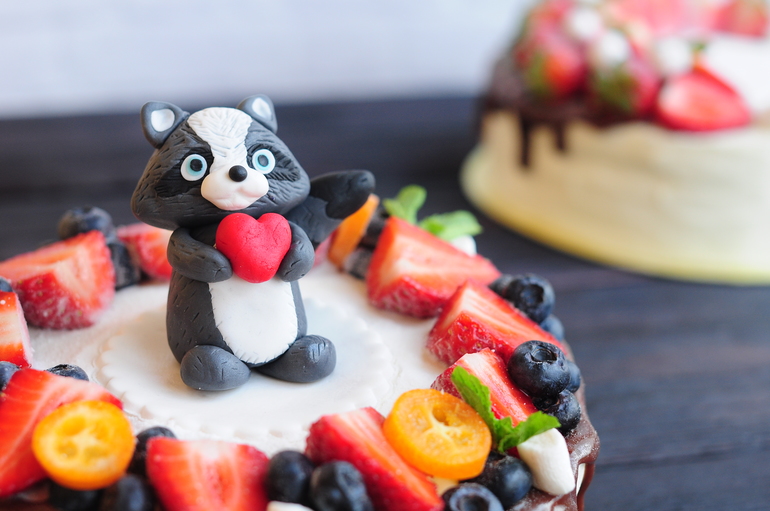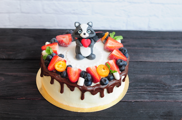 Украшение тортов кремом,шоколадом, фруктамиПросто мини тортик и просто маленький енотыш :)
