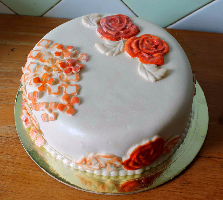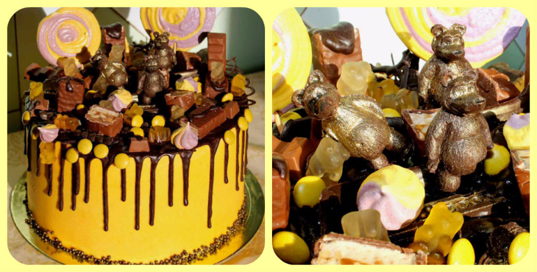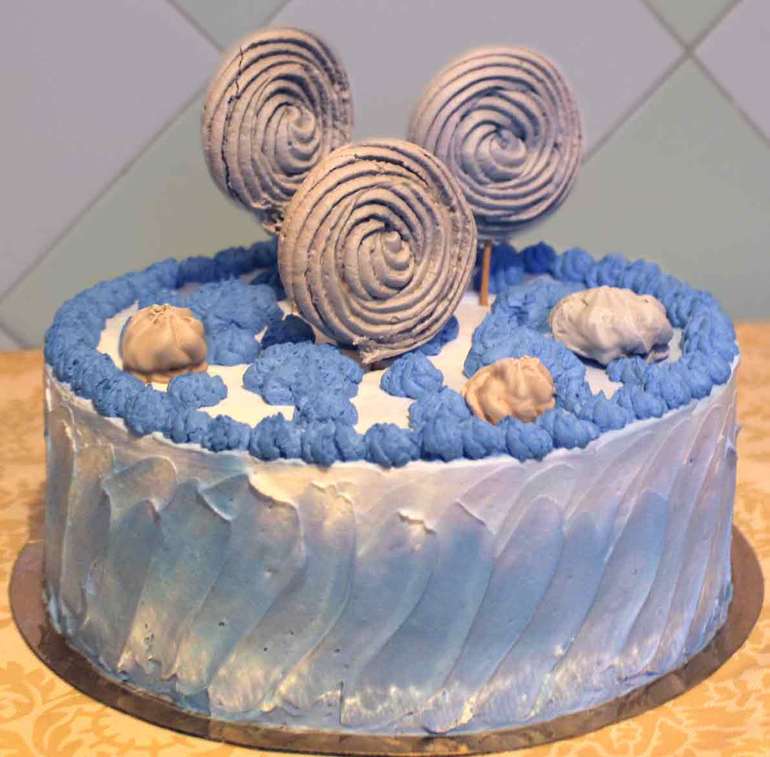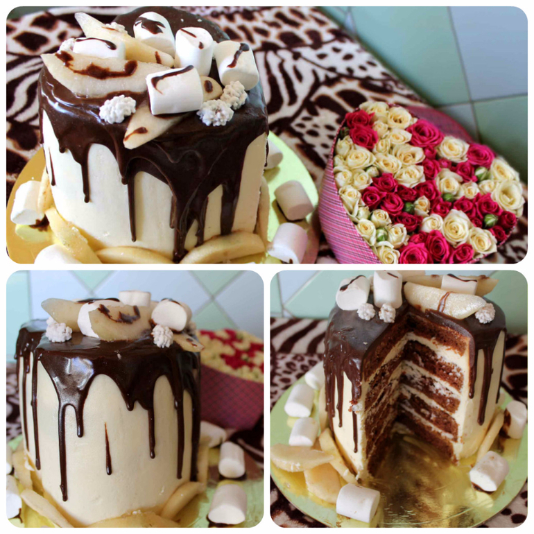 Первый торт был сделан в январе и покрыт самодельной мастикой, вышел совсем неудачным - мастика рвалась и убегала.