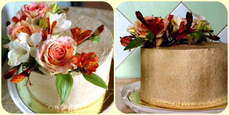 Затем был торт с живыми цветами, на юбилей для маминой подруги: