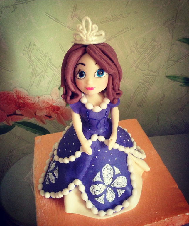 Что касается юбки - можно и полую делать (не так уж на много увеличивается время изготовления, если правильно организовать работу), можно и из скульптурки (не так уж и сильно она снизит вес), а можно и из мастики - у меня, например, София вышла около 250 гр... что вполне нормально для фигурки на торт. Важно работать с правильным материалом и, повторюсь, если уж делать фигурку, то работать над ней, а не вот так, как на фото. Я понимаю - мои слова могут обидеть.. Но вы не начинающий кондитер - я посмотрела.. Вы давно торты делаете. Пора уже начинать и переход к качеству. Да, можно опустить портретное сходство с персонажем - это ничего.. но чтобы вот так сделать подол юбки? Это не работа.. Что могло помешать сделать ровной нижнюю юбку? Что могло помешать сделать хотя бы одного размера четырехлистник на верхней? Про руки, разные глаза, брови на лбу и попытку упростить работу с помощью молда бусы (который сюда слишком велик.. но даже при этом он неаккуратно использован) я пока что не стану спрашивать.. Меня интересует по какой причине такая кривая юбка у Софии. Это-то под силу даже новичку.