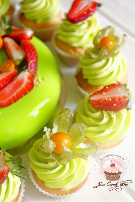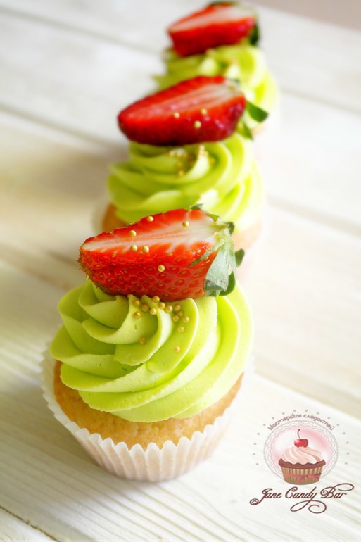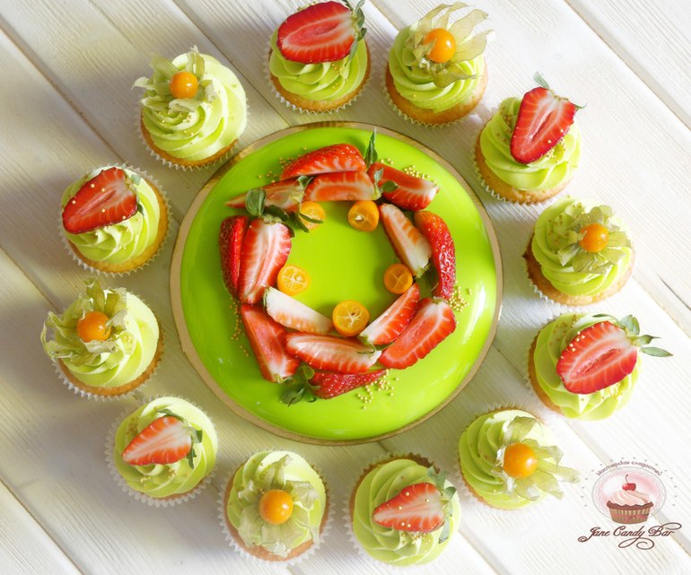 Клубника была большая. Смотрится немного грубовато на тортике. Ежевичный чиз и ванильно-лаймовые капы