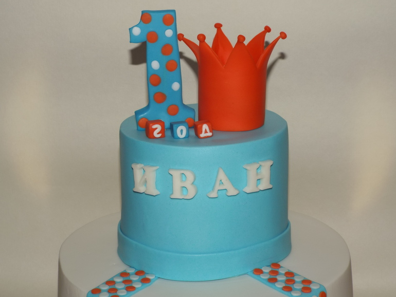 Торт для Ванечки на годовасие.Совместная работа с Татьяной-пряничной мастерицей.Низ песочный шоколадный с малиной,верх -медовик.Вес 4,5 кг.