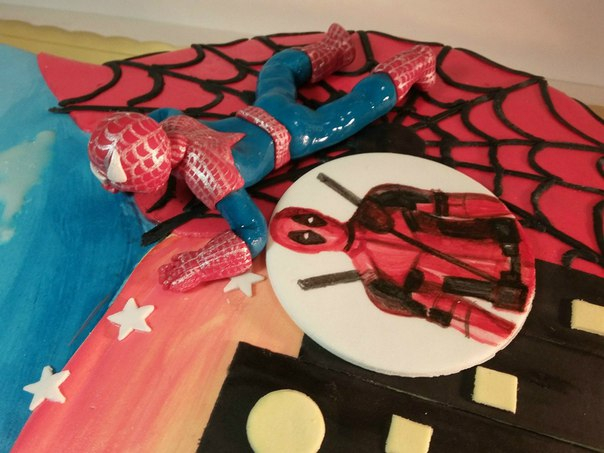 Торты детскиеТорт для юного поклонника Человека-паука и Дэдпула. Вес - 4,5 кг, внутри "молочная девочка" со сметанного-сливочным кремом - самая востребованная начинка для детских тортиков.