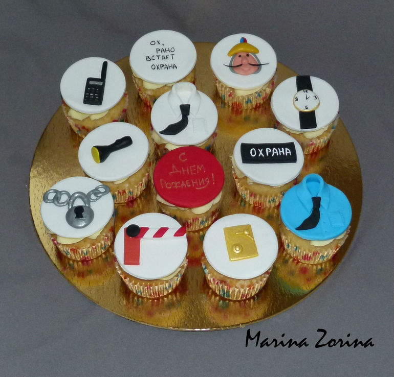 Капкейки и Кейкпопсыможет плохо искала, но в интернете не получилось найти ничего интересного по запросу торт или капкейк для охранника ,поэтому пришлось включать свою фантазию