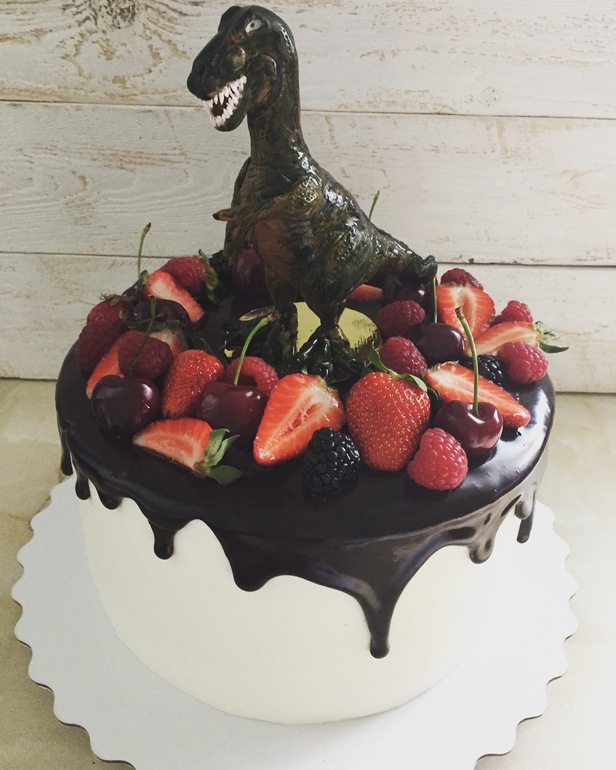 Украшение тортов кремом,шоколадом, фруктамиОчень боялась лепить этого хищника! Лепка не мой конёк! Динозавр на каркасе, было очень мало времени, думаю, не просох бы! Внутри шокобисквит, маскарпониевый крем, вишня! Вес 4,5кг!