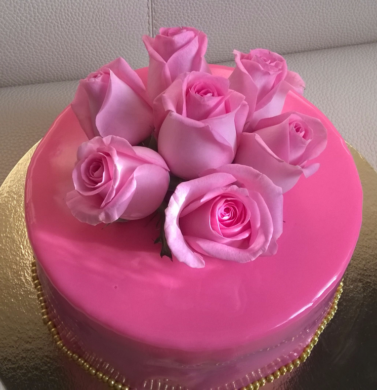 Торты для домашних и друзейТорт с живыми розами и зеркальной глазурью на двойной ДР, для моей мамы и сестренки.