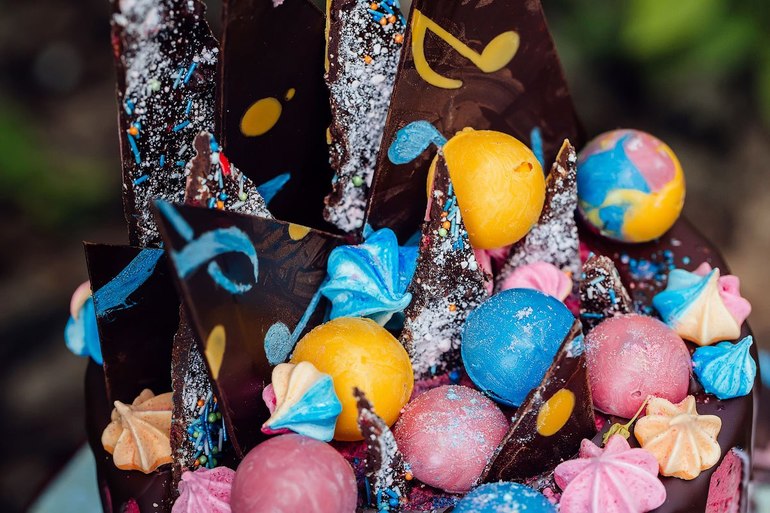 Взрыв красок и большое количество техник работы с шоколадом - всё это на МК Колоркейк Марины Воротынцевой в Кондитерской Школе СЛАДОСТЬ 02 июля 2016 года.