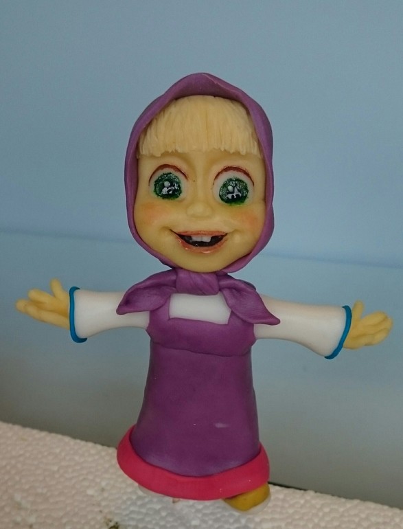 Уж не знаю, насколько мое мнение Вам пригодится, но просто если сравнить с мультиком, лицо у нее менее вытянутое должно быть, круглее, глаза чуть меньше, зрачки светлее, цвет платья и косынки обычно у нее ближе к розово-малиновому что ли... окантовку, обувь и челку побольше. И цвет кожи как будто желтый, либо фото так искажает... ну как-то так)) это если критика нужна, а так милая и веселая Маша)) имеет право на существование))