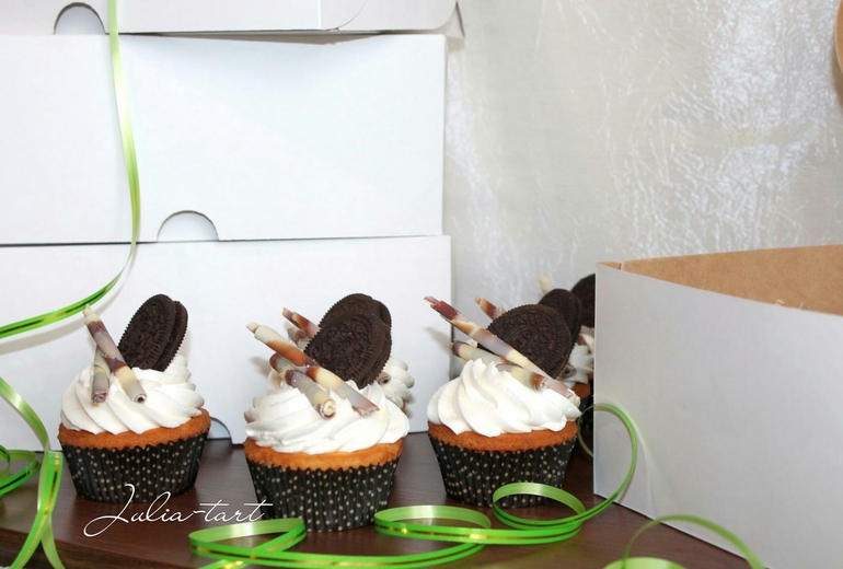 Капкейки и КейкпопсыВсе чаще стали заказывать капкейки.. этот набор для мальчика, праздник на природе.. 30шт ванильно-карамельных с сырно-сливочной шапочкой:)