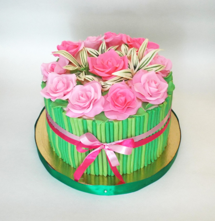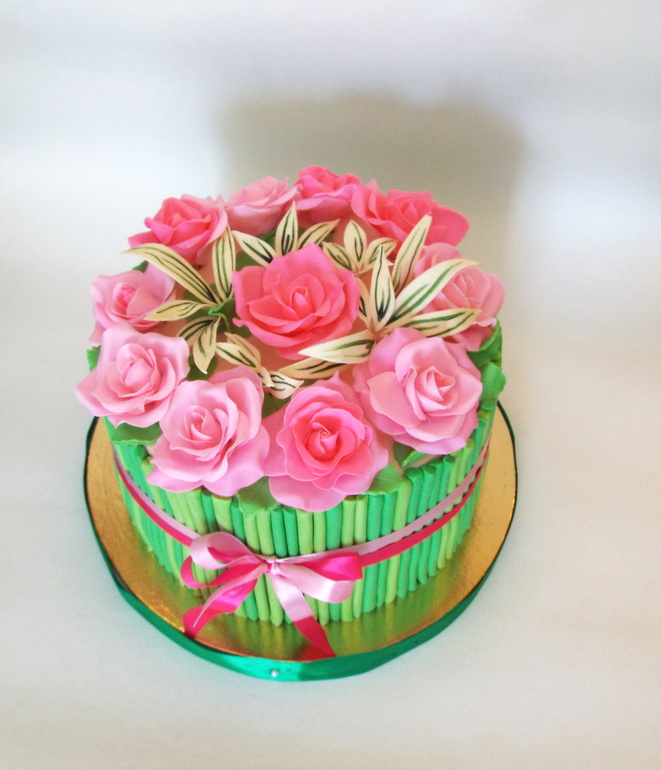Торты для женщинЗаказ срочный,роз не хватило,не подрасчитала количество,да и не успевала их еще сделать,поэтому получился вот такой букетик.