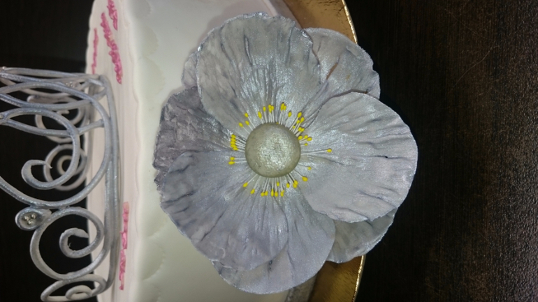 Начинка молочная девочка со сливками и клубникой. Очень понравилось лепить диадему и серебряный цветочек тоже неожиданно интересный получился)