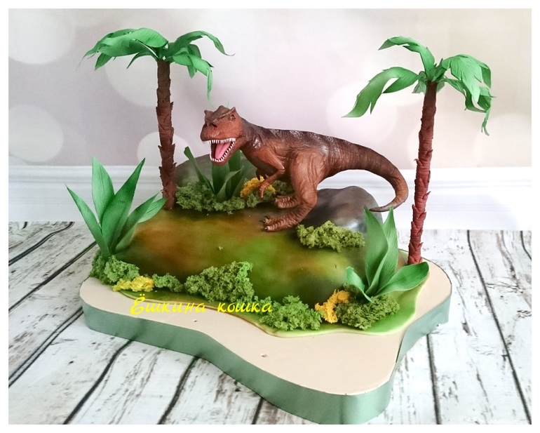 Динозавр ты имеешь в виду? Ну да, не маленький, не помню точно. Торт на 4 кг, а он, видишь, почти на 3/4 торта растянулся.