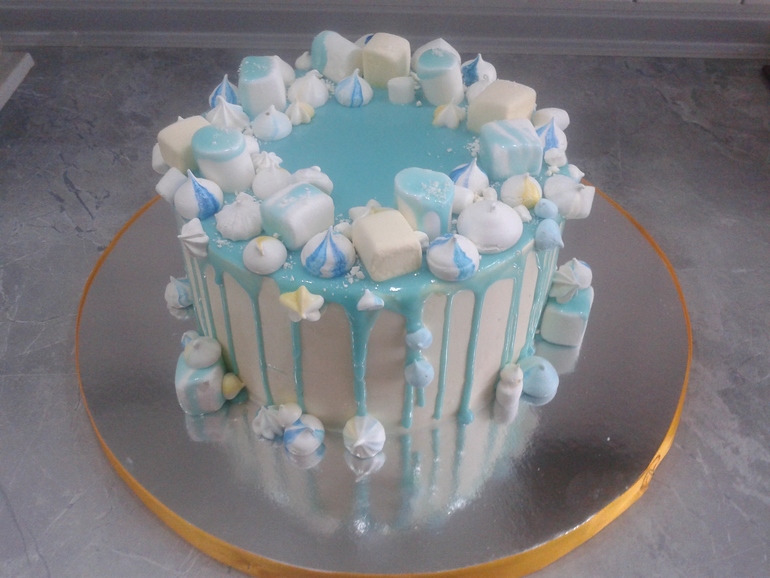 Сам торт лазурного цвета, на фото слишком уж голубой.