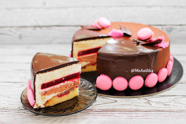 Выглядит очень аппетитно и необычно. И разрезик такой многослойный! Слой бисквита, желе,мусс, а посередине что.