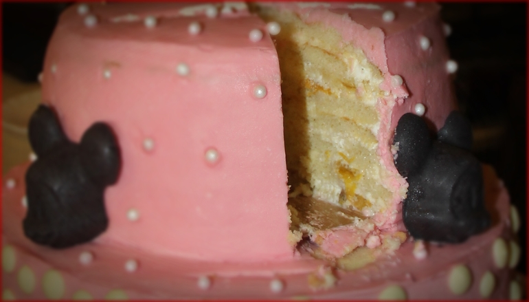 Тортик нижний птичье молоко,а верхний -молочная девочка с персиками