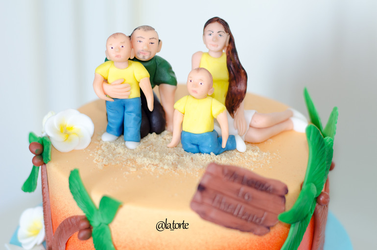 Торты тематическиеЭтот тортик заказывала жена для любимого мужа и папы двух близнецов. В нем мы постарались совместить его семью и увлечения слониками и Тайландом! Многие меня поймут, что когда работаешь над тортом, то происходит полное погружение в тему)) Скажу честно, что мне сразу же захотелось на море-океан! Теперь вынашиваю поездку в Тай))