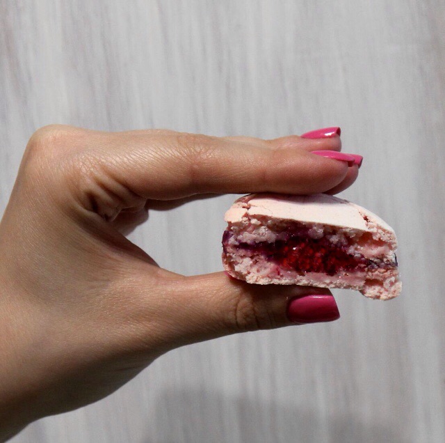 Печенье,пирожные,конфеты, выпечкаНаконец то я на них решилась . Я все жмотилась на муку, начиталась о них, что капризные , сразу редко получаются , а у меня с терпением проблемы ))) один раз не получается, второй раз ни за что не возьмусь ..... Ну короче , я всё ж не утерпела , купила полкило муки и попробовала... Начинка - ягодный ганаш на белом шоколаде и свежая малинка . Для первых наверное нормальные? Мне кажется, крупноваты , диаметр 5 см . Буду уменьшать в след. раз.