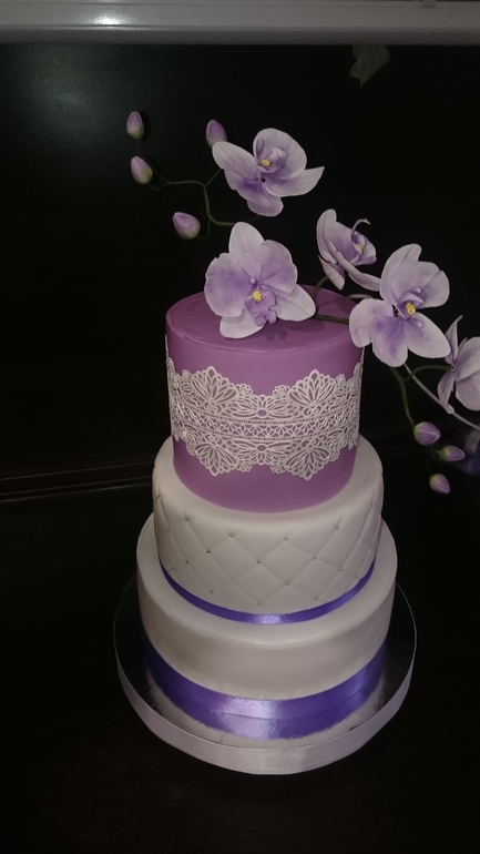 Спасибо большое! Диаметры ярусов 15,20,25 высота соответственно 12,10,10 Орхидеи лепила пока яруса пропитывались в холодильнике. Хорошо хоть мастика на цветочки очень хорошо застыла.... хотя планировалось изначально 9 цветочков. Но успела только 5 (
