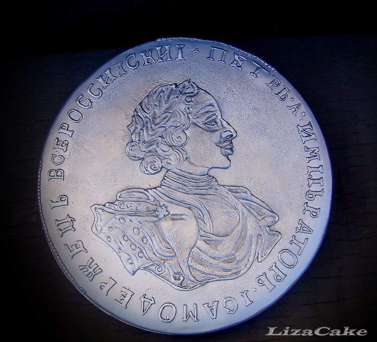 позвонила заказчице, говорю - я не буду это делать.. это сложная и кропотливая работа - там помимо Петра рехнешься на одних только буквах перекосорыленных (а вырезать-то их надо именно такими, чтоб сходство с вожделенной монетой было).. вы мне столько не заплатите