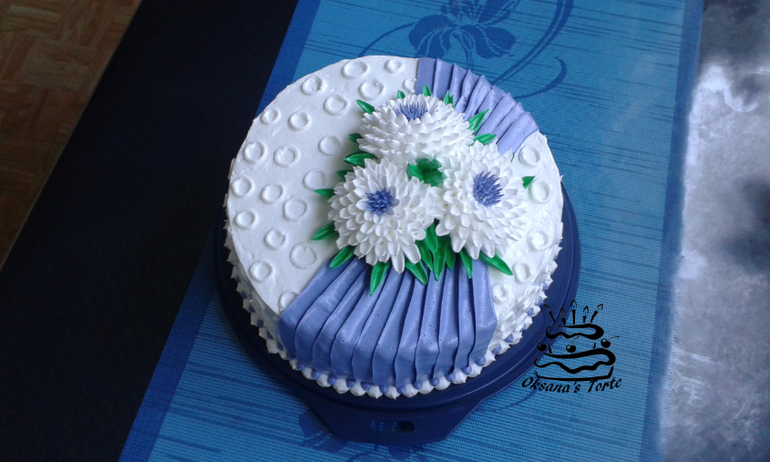 Оксана, торт красивый получился, и я бы не сказала, что это быстро тортик ))) Одни цветочки сколько времени возьмут, а что за крем на торте, Вы использовали, колечки красиво вышли