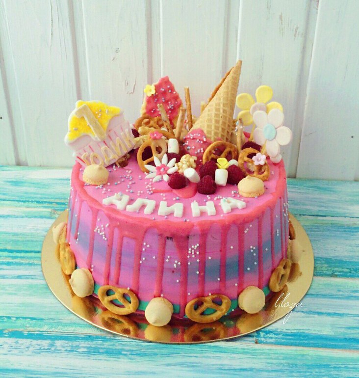 Яркий тортик на первый годик для малышки
