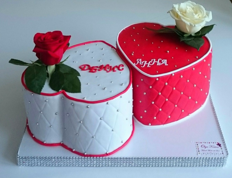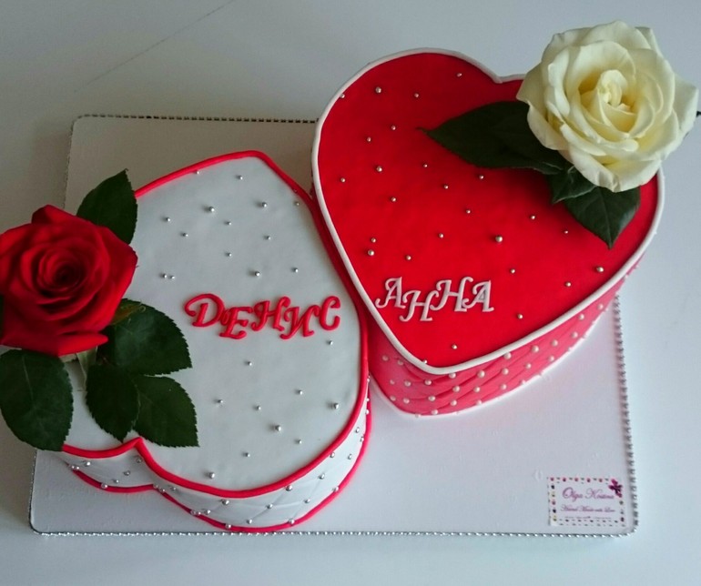 Торты свадебныеТорты в виде сердец с живыми розами на бело-красную свадьбу!